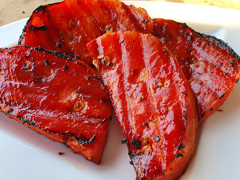 Een lekker Side-Dish of nagerecht. Door het zacht worden van de Meloen op de Barbeque heb je een totaal andere smaak
