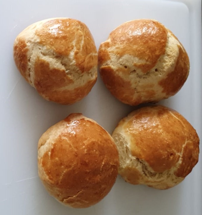 Plaats de bolletjes op de bakpapier, smeer bolletjes met een beetje Olijfolie in en dek ze af met Huishoudfolie en laat ze nog 30 – 45 minuten rijzen.