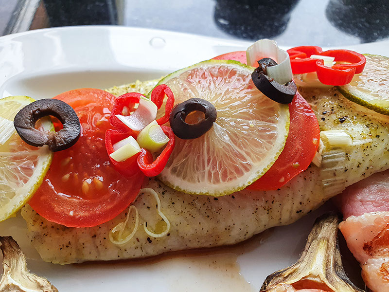 Benodigdheden:1 Pangafilet1 Tomaat1 Limoen1 Zwarte Olijf1 Bosui1/2 Madame Jeanette PeperOlijfolieSanta Maria Lime Pepper voor een heerlijk pittige limoensmaak Voorbereiding:Dep de Pangafilet droog met keukenpapierSnijd de Tomaat, Olijf, Madame Jeanette Peper en een halve Limoen in plakjesLeg een groot stuk Aluminiumfolie op de snijplankDoe wat Olijfolie… Lees verder »Pangafilet met Limoen
