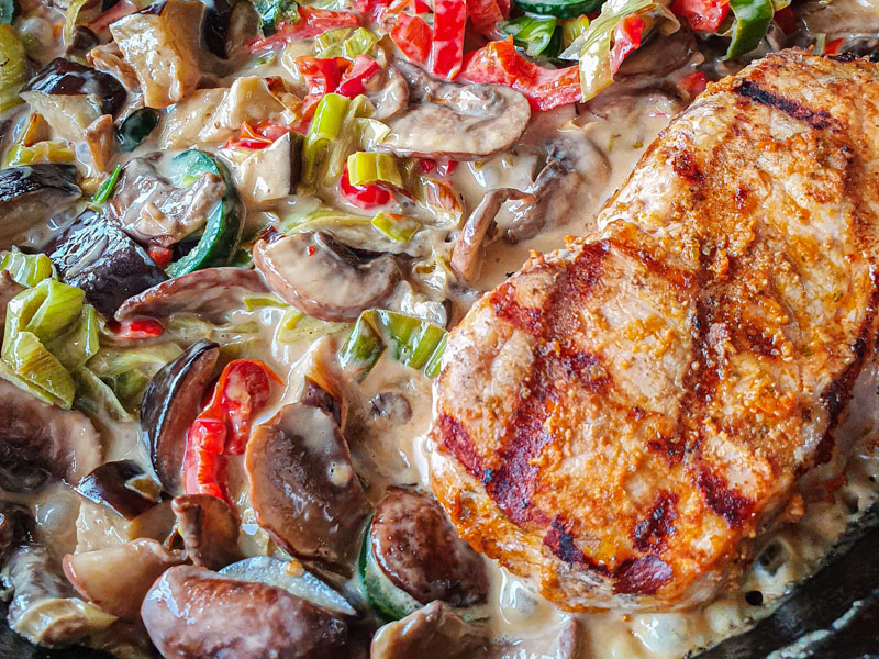 Leg de Entrecote in de Skillet zodat deze ook nog wat van de Kookroom mee krijgt.