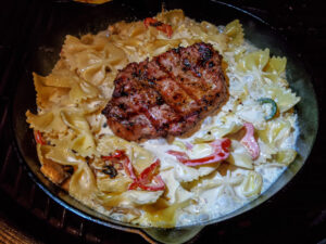 De combinatie van een Ribeye met Pasta en Groenten smaakt altijd. Kookroom is een toevoeging om alles lekker romig te maken