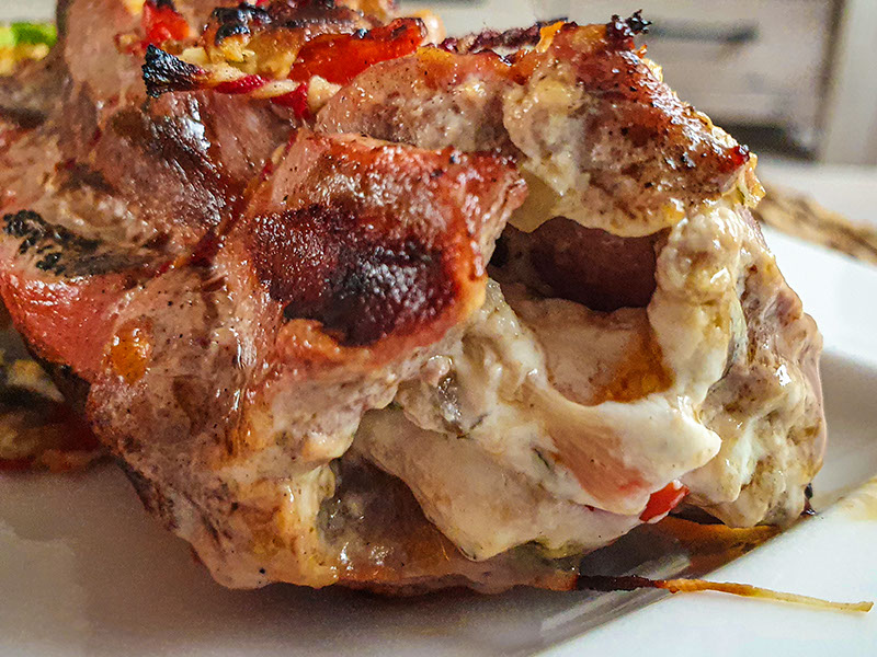 Verdeel de vulling over de gevlinderde Kophaas en doe er Roomkaas naar smaak op