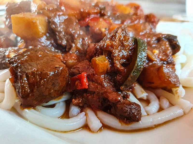 Een heerlijk stoofgerecht voor 2 personen. Het zuurtje uit de Witte Wijn trekt mooi in de Kweepeer en de Tomatensaus maakt het compleet