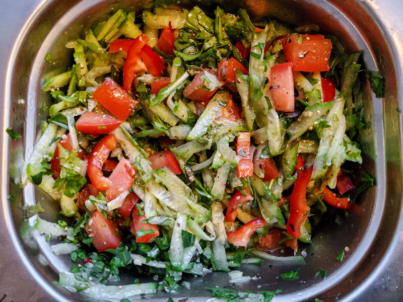 Een heerlijk frisse Salade die eigenlijk bij ieder gerecht past. Pas hem zelf aan naar smaak
