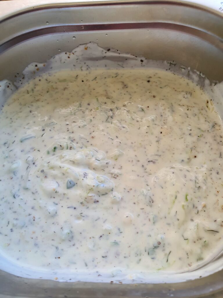 Doe de Yoghurt in een mengkom en voeg de Knoflook toe