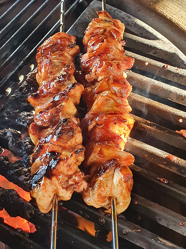 Leg de Yakitori spiesjes op de Barbeque en laat ze even